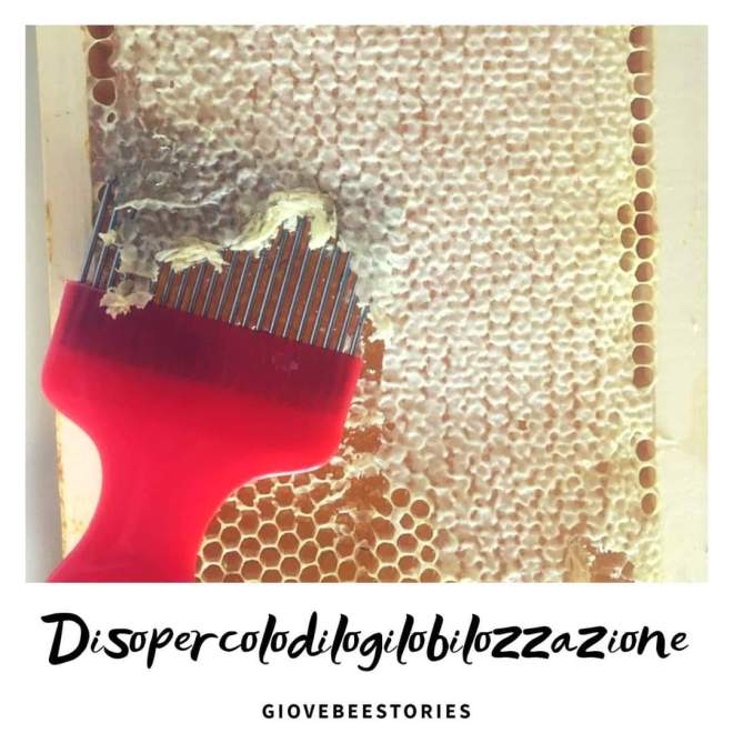 Rieccoci per un altro appuntamento dedicato a #giovebeestories! Si, è sabato (non giovedì) e sono al mare per il primo (e ultimo) bagno dell’anno, ma l’ #agribancario ieri si è fatto un dolce mazzo a smielare ed è d’obbligo raccontarlo. La settimana scorsa Eravamo rimasti al miele opercolato, ricordate le cellette tappate come riserva per l’inverno? Ebbene, per estrarre il miele è ovviamente necessario stapparli (buon anno!) e per farlo di solito ci si aiuta con una forchetta che forchetta non è ma che ha la forma simile ad una… Mmm… Forchetta. Con un’abile mossa L’Agribancario disopercola le cellette e via nella centrifuga. Il resto ve lo spieghiamo nella prossima puntata che adesso sono al mare e mi si stanno sciogliendo gli occhi. Ciao.