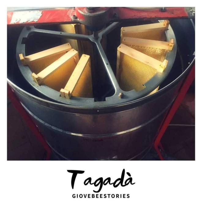 Dopo aver disopercolaro le cellette con quella simil forchetta l’#agribancario ha infatti posto I telai nella centrifuga così da far uscir il dolce oro da tutte quelle cavità.