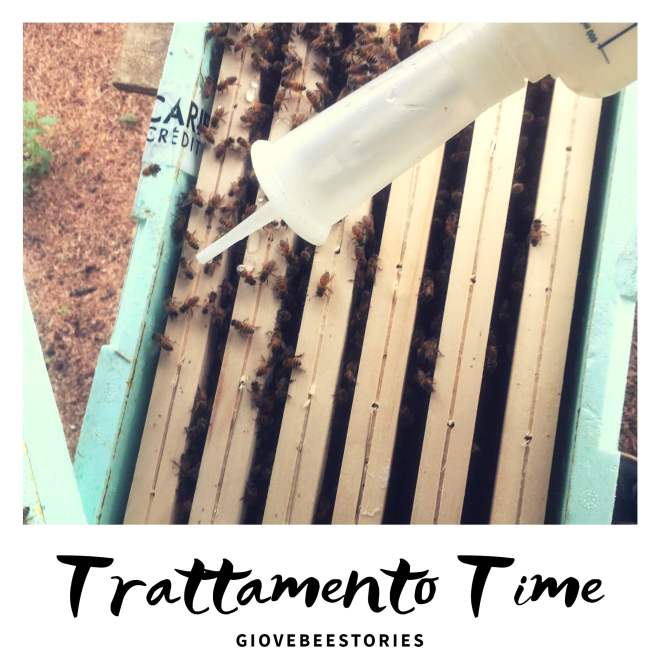 A suon di Giovedí qua ci scappa il 2020 di mano. Molti diranno “meglio” “era ora” ” anno bisesto anno funesto”, il circo delle banalità insomma, eppure abbiamo ancora molto da raccontare sulle nostre piccole carcerate gialle. Che poi volendo la rubrica si poteva anche chiamare “yellow is the new black”, yellow api, carcere striscie, si insomma tempismo perfetto. Per fortuna a tenerci aggiornati ci pensa l’#agribancario che proprio oggi è andato a fare un trattamento con acido ossalico. Ricordate che qualche tempo fa aveva isolato la regina? Ebbene oggi, a distanza del tempo necessario per far nascere le nuove larve e non farne deporre di nuove alla regina, ha potuto procedere in sicurezza per eliminare la varroa. È possibile fare il trattamento in un’unica volta, oppure suddividerlo in 3, una ogni 7 giorni. Frankmcmartin ha scelto la prima opzione perché secondo lui più efficace, in questo modo infatti il rischio di non arrivare alle cellette non ancora opercolato e raggiungere anche le larve svanisce. Dall’immagine si può vedere il super siringone con cui vengono trattate le casette: acido ossalico (che se volete sapere cosa contiene ve lo googlate, non sono un chimico e non voglio farvelo credere), acqua e zucchero che è un po’ come servire ad un cane una pastiglia avvolta nella pancetta 😏