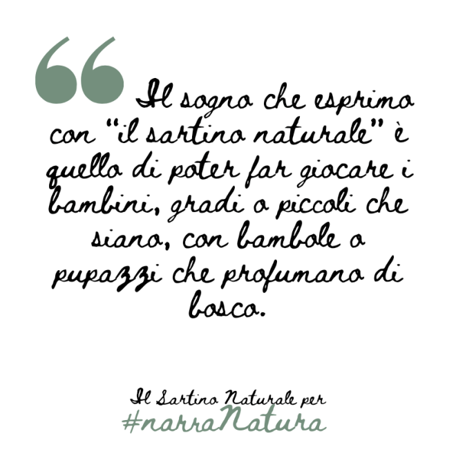 Nel suo laboratorio artigianale ha dato vita ad un progetto sognatore, appassionato e decisamente riuscito. In netta controtendenza alle proposte plasticose che il mercato propone, Sara invita le persone ed in particolare i genitori ad un recuperato modo di vedere il gioco realizzando pupazzi sani e naturali con metodo certosino e autenticamente lento.