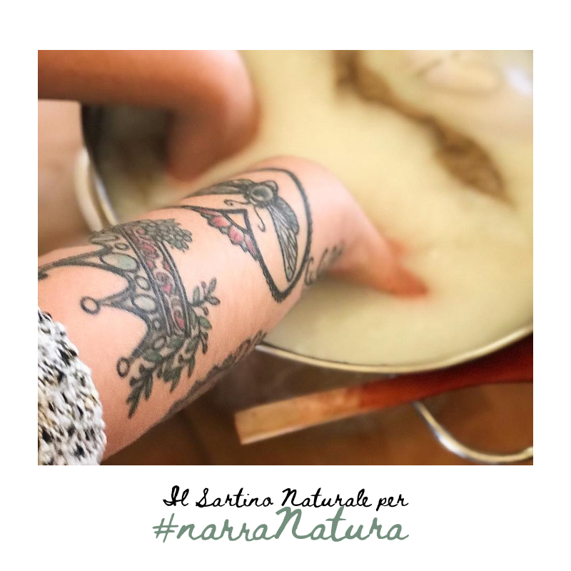 E così seleziona tessuti o filati rigorosamente 100%naturali, procede con la mordenzatura, li mette cioè a bagno per preparare le fibre e poi li tinge. Li mette a bollire in decotti di foglie che doneranno colore alle pezze, colore vero e capace, ancor prima di essere modellato, di raccontare una storia… Di natura.