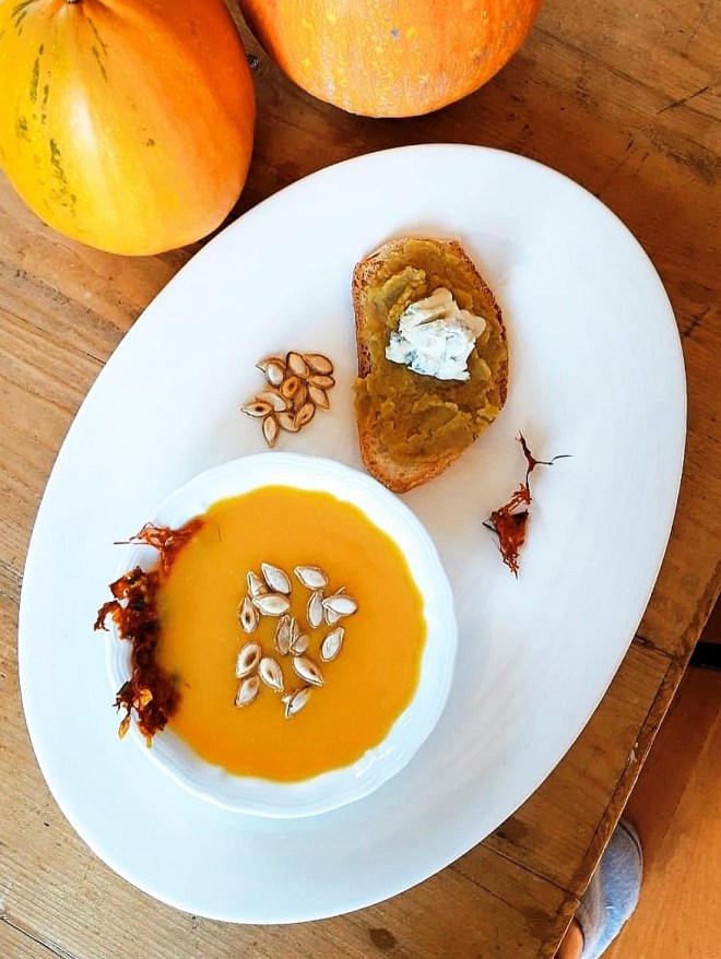 Sono lieta di pubblicare la ricetta vincitrice del contest “Salva una zucca”, una vellutata di zucca con crostino al gorgonzola ideata e realizzata da Margherita Frattini (IG @magmaggie_na).