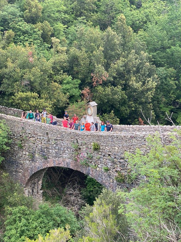 Si parte, questa volta in direzione mare. Ci lasciamo alle spalle Cassagna ed arriviamo sul ponte di Nascio, un unico arco ben conservato, lungo una ventina di metri, scavalca la gola del Rio Novelli. A metà campata un’edicola, una Madonnina tiene con aria dolce ma ferma il bambinello.