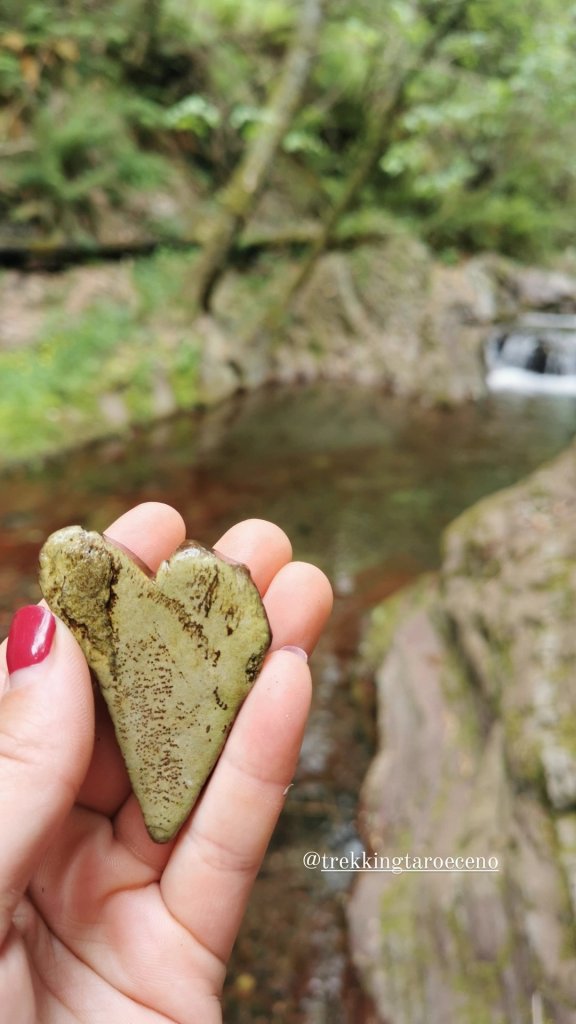 La Val Graveglia è infatti ricca di tesori geologici nascosti: aree carsiche, graniti, cave di diaspri e miniere di manganese. Per il pranzo, gialli di ginestre fiorite, arriviamo infatti alle miniere di Gambatesa, foto sui trenini e si riparte subito. Poco prima dell’arrivo un gelido pediluvio delle acque sotto a Cassagna, ci rimette in vita. Ed io tra bardane e cascatelle trovo pure un sasso a forma di cuore. Ah, l’amour! Mezz’oretta di cammino tutto in salita e siamo a Cassagna.